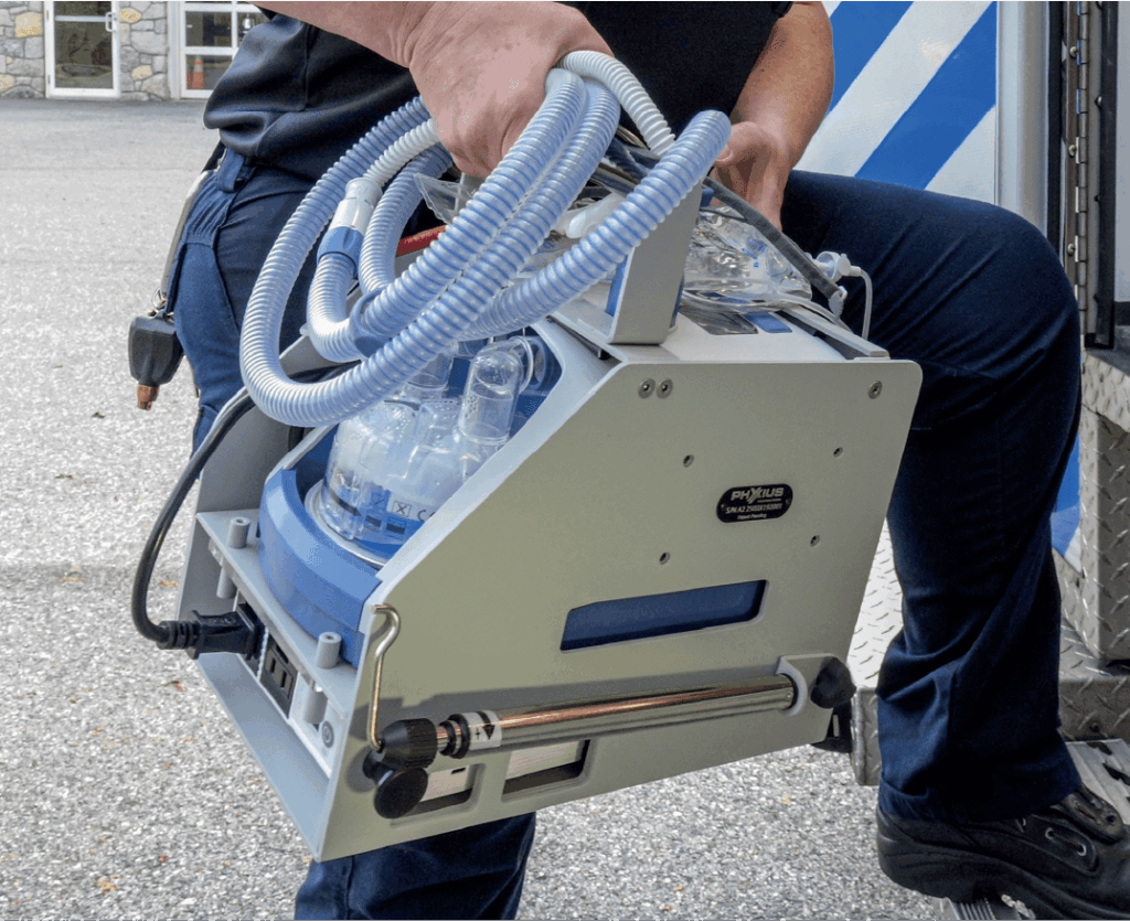 Phyxius high flow carriers address the need for a lightweight, flexible transport system that incorporates a robust power system with multiple possible high flow generators as well as fluid for humidification.